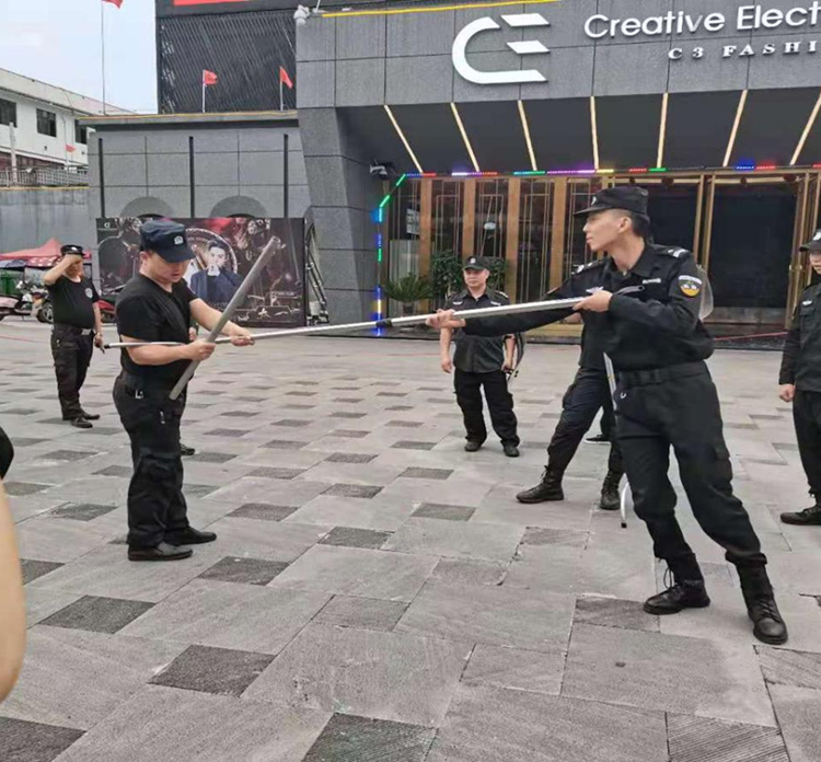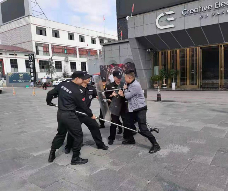 由保安隊長詳細講解防暴器械使用要領(lǐng),認真進行動作示范,隊員逐一對照練習(xí)。主要包括鋼叉、盾牌、甩棍等的單獨使用,以及配合使用方法。通過有效利用防暴器械,達到抵御打擊匪徒、保護自身安全和維護客戶正常環(huán)境的目的。
