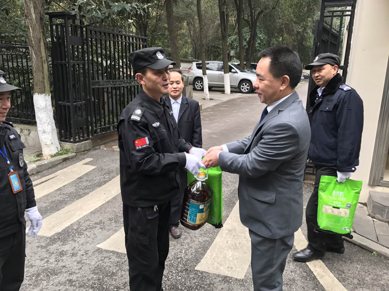 第二組由陟翔集團股東代表李鵠帶隊,保安大隊長吳長沂、劉帆、胡申亮隨同,主要對省政府、北京路華能貴兩個站點進行了慰問和祝福。
