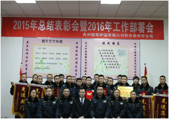 2016年1月15日,貴州鎮(zhèn)東護(hù)運(yùn)有限公司2015年工作總結(jié)及2016年工作部署會(huì)議在東山大酒店六樓會(huì)議室召開(kāi),參會(huì)人員有:貴州鎮(zhèn)東護(hù)運(yùn)有限公司董事長(zhǎng)王訓(xùn)江、副董事長(zhǎng)冉光齊、監(jiān)事會(huì)主席徐登嘉及各分公司負(fù)責(zé)人。