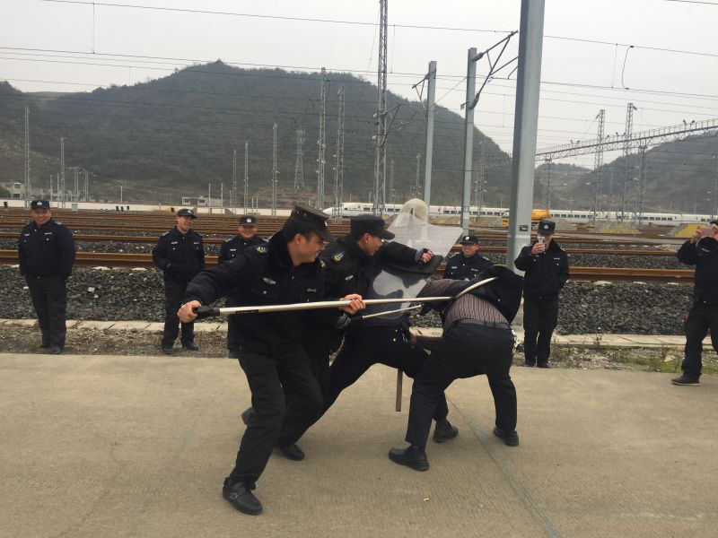 三、按照客戶單位《反恐怖主義法》宣傳教育活動周安排,于2016年12月21日14:00-16:00,由駐車輛段動車所保安隊(duì)開展反恐處突實(shí)作演練,共計26名駐車輛段動車所保安隊(duì)隊(duì)員參加演練,于2016年12月22日9:00-10:00,由駐車輛段、客運(yùn)段保安隊(duì)開展反恐處突實(shí)作演練,共計12名駐車輛段、客運(yùn)段保安隊(duì)隊(duì)員參加演練。本次演練以反恐怖主義法教育、反恐器材使用、反恐團(tuán)隊(duì)配合和應(yīng)對刀斧砍殺實(shí)作演練為主,有效提高了職工反恐應(yīng)急處置能力。